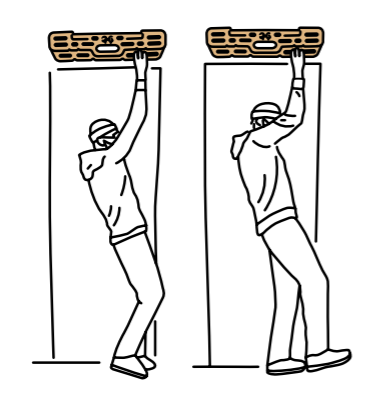 - Prends une prise confortable sur ta poutre d’entraînement d’escalade en appliquant une légère tension (~5 kg).