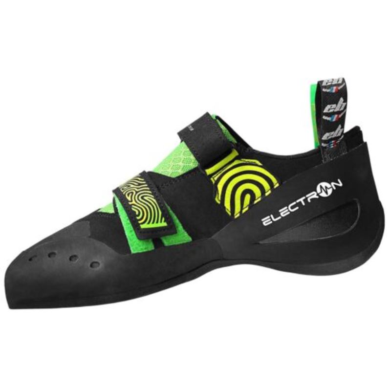L’Electron est un chausson d’escalade intermédiaire très confortable tout en restant exigeant en matière de technicité. Avec sa légère asymétrie et sa cambrure maitrisée, le confort y est maximum et l’efficacité adaptée pour les plus aguerris. Parfait pour les premiers pas en escalade, l’Electron est aussi destiné aux grimpeurs ayant un peu d’expérience et souhaitant poursuivre leur progression.. Il satisfera tous les grimpeurs qui ne supportent plus les douleurs aux pieds et qui sont à la recherche de sensations sur le rocher comme sur la résine.