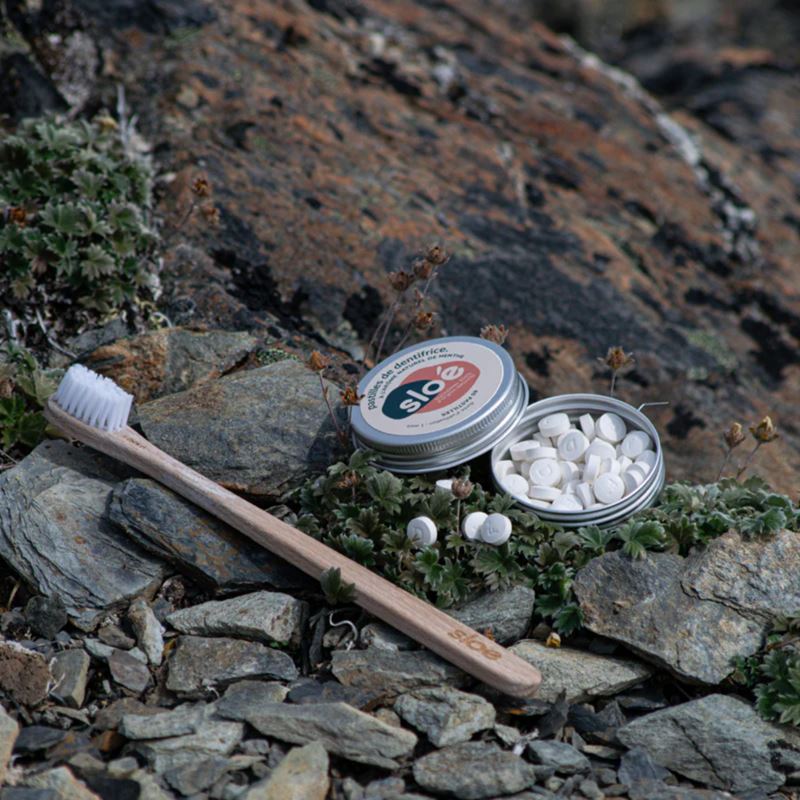 INCI : Microcrystalline cellulose, Sodium bicarbonate, Silica, Sodium Lauroyl glutamate, Magnesium Stearate, Aroma Menthol*, Xanthan Gum, Stevioside, Citric acid, Sodium fluoride, EugenolV