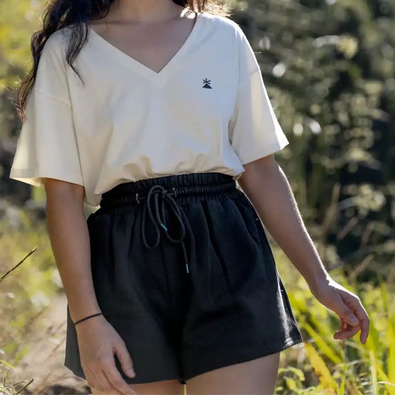 Sa forme courte évasée comme une jupe et sa large taille haute élastiquée lui conférent une coupe des plus flatteuses.