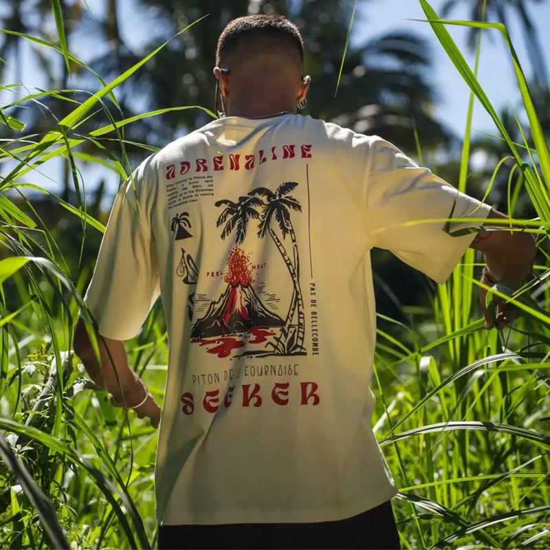 Tendance avec son grand graphisme sérigraphié dans le dos, le Tee Iconic arbore un des joyaux naturels de l’île de la Réunion (d’où ‘iconique’ = un des icônes de la Réunion) : l’évocation d’un souvenir ou d’une expérience vécue.