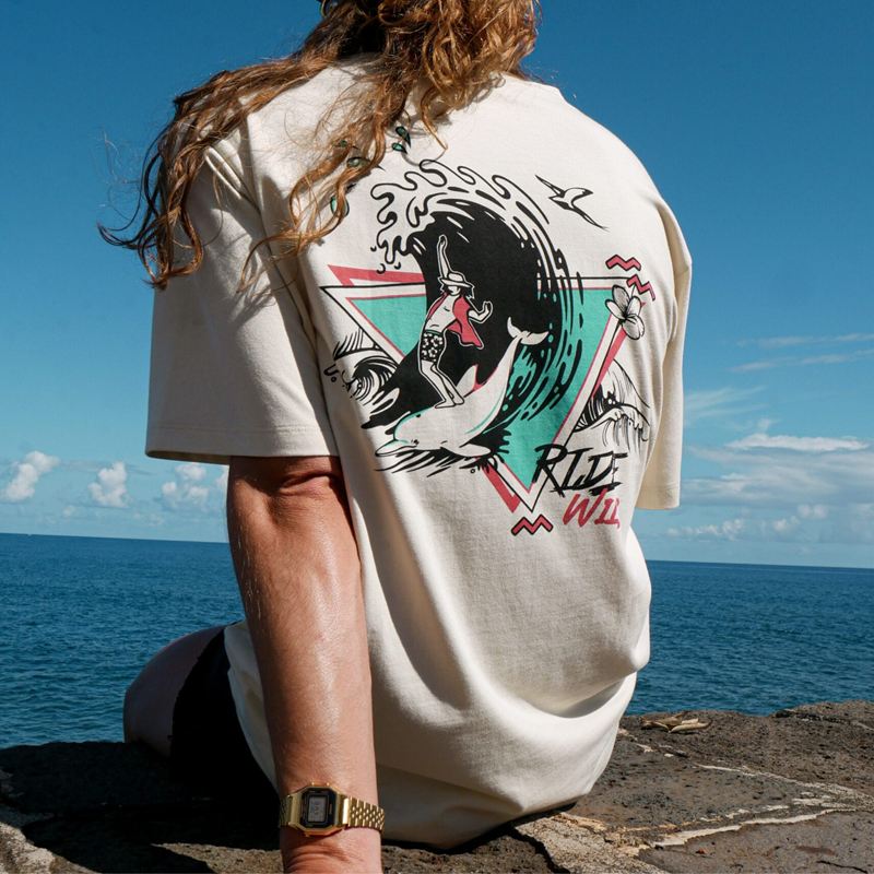 T SHIRT – WAVE SURFEUR – CREME – ZINTENSE